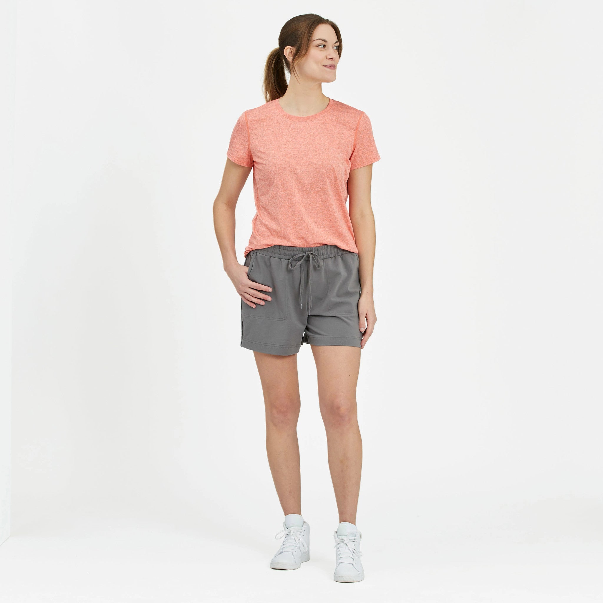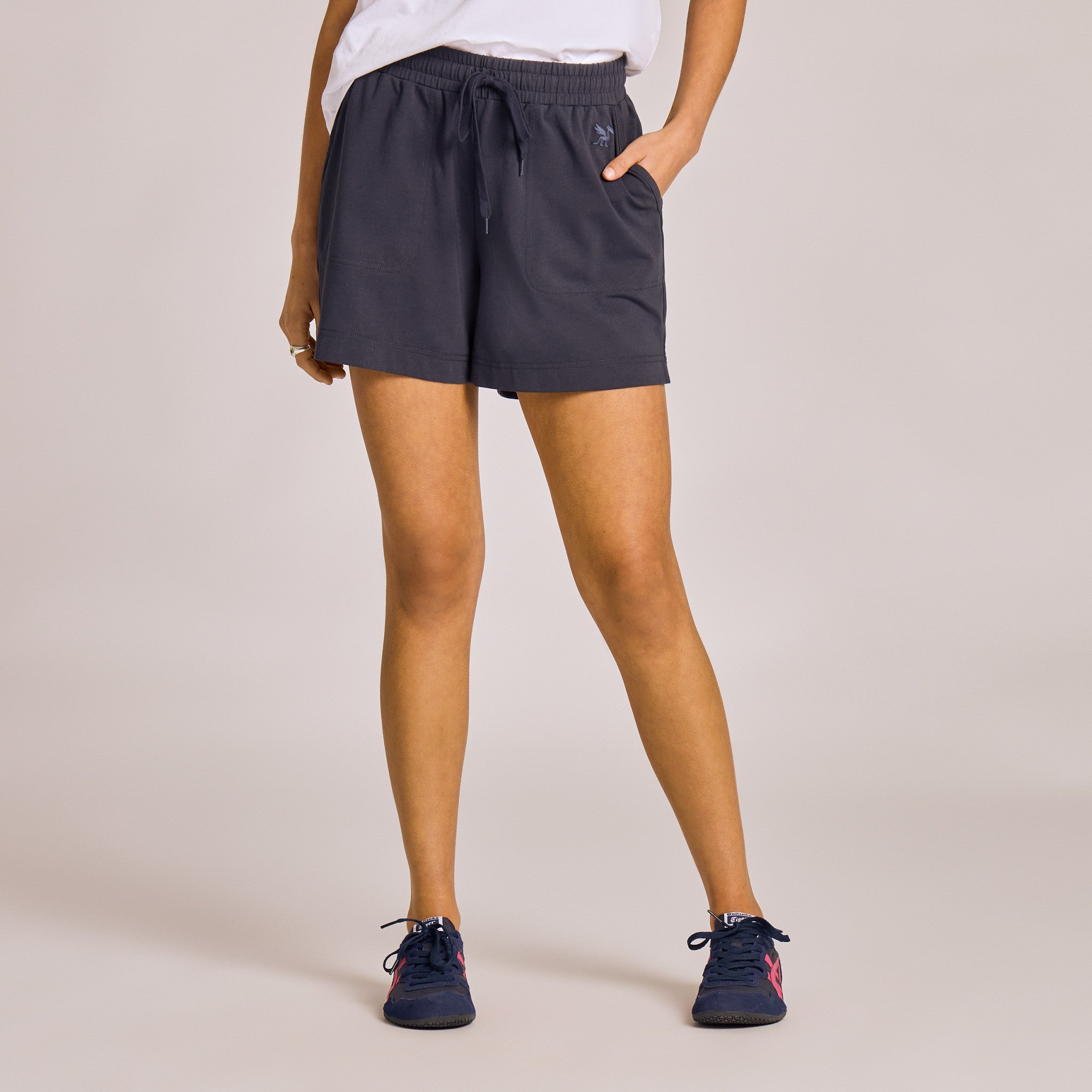 - Elastic encased self waistband with drawcord.