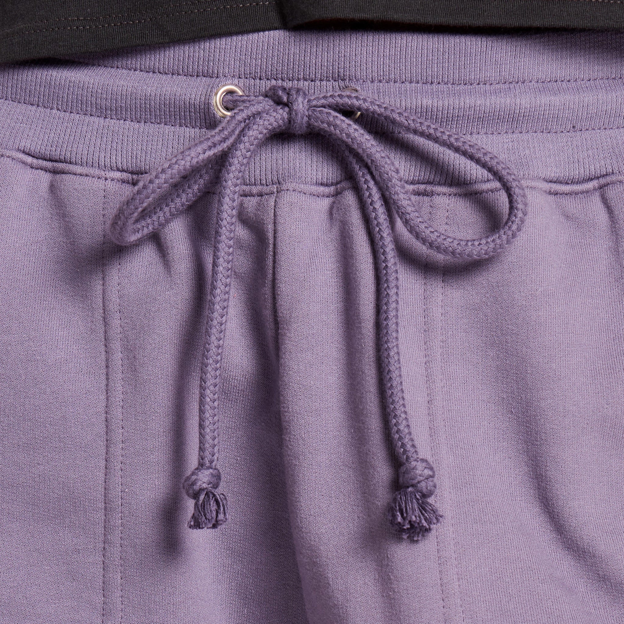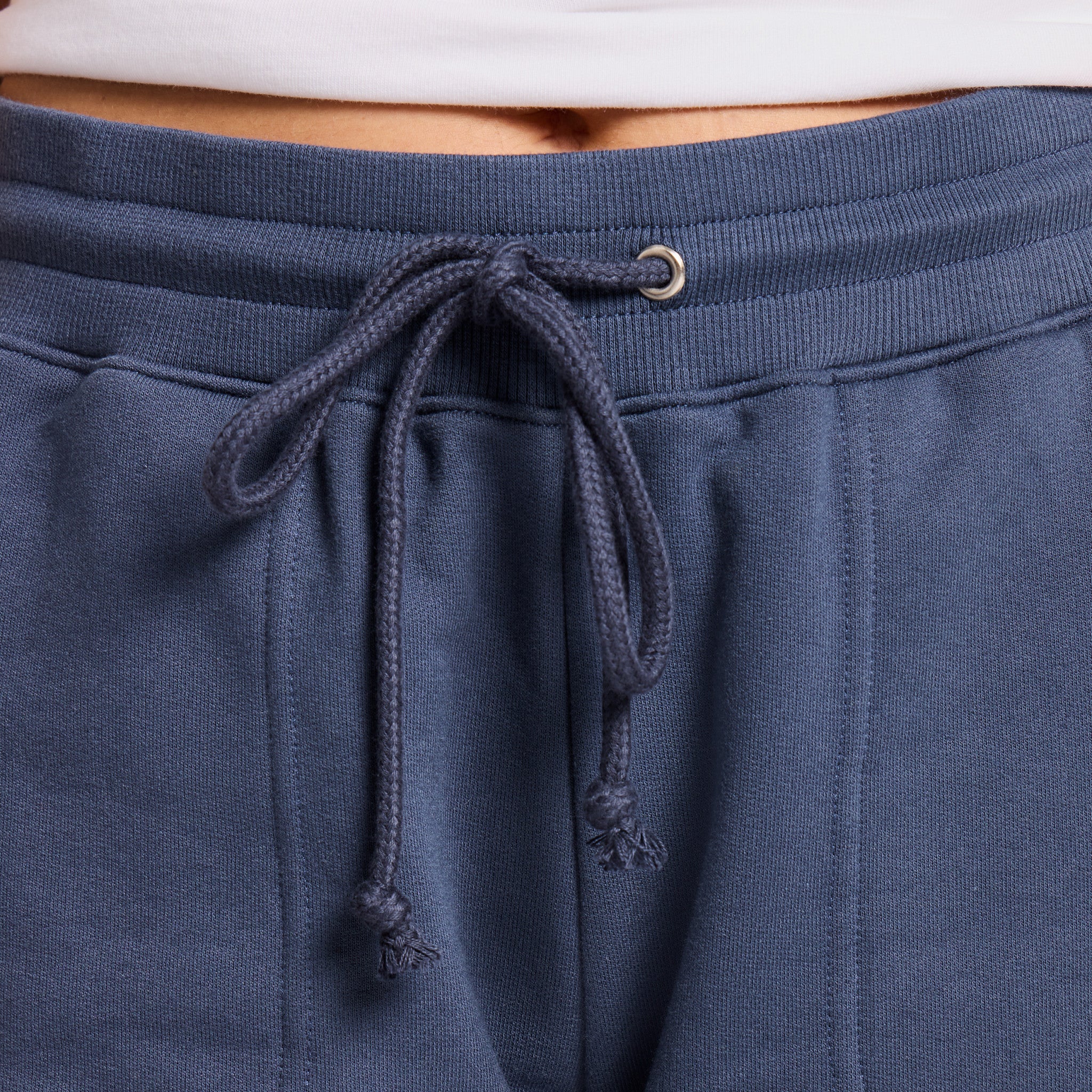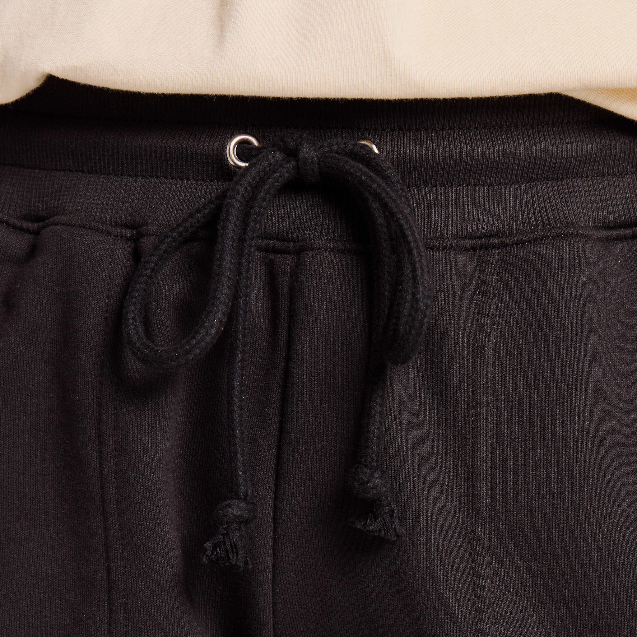 • Elastic encased cotton/spandex rib waistband with metal eyelets and a dyed-to-match cotton drawcord that's tacked at center back to stay in place after wash.