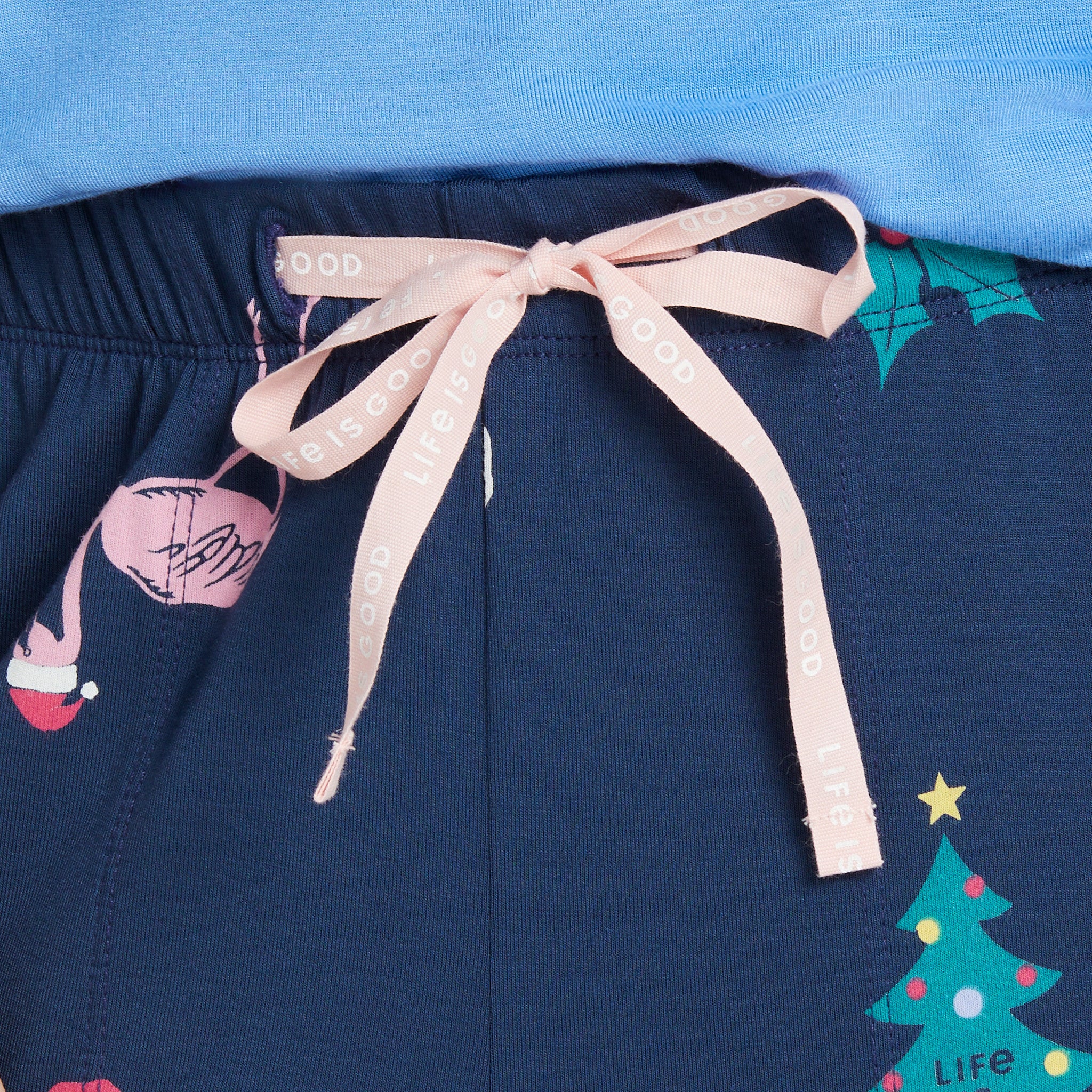 • Elastic encased waist band with Life Is Good® printed woven drawcord. Slash pockets are stitched down to stay in place.